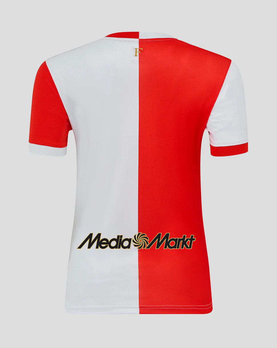 Het Feyenoord Thuisshirt voor het seizoen 2025-2026 is een eerbetoon aan de rijke historie van Feyenoord met de onmiskenbare rood-witte kleuren. De gouden accenten, in de vorm van het Castore-logo en de outline van de sponsors, zorgen voor een stijlvolle touch. Voor het eerst is het aangepaste Feyenoord-logo te zien op de linkerborst. De roodtint van het shirt is hierop aangepast. De korte mouwen en verlengde achterzijde bieden comfort en bewegingsvrijheid, zowel op het veld als in de tribune. De geborduurde Castore- en Feyenoord-logo’s maken de look af.